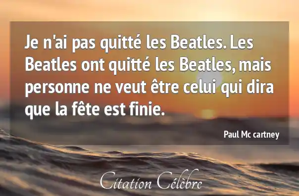 Je n'ai pas quitté les Beatles. Les Beatles ont quitté les Beatles, mais personne ne veut être celui qui dira que la fête est finie.