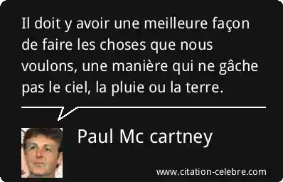 Il doit y avoir une meilleure façon de faire les choses que nous voulons, une manière qui ne gâche pas le ciel, la pluie ou la terre.
