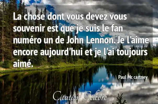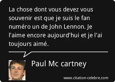 La chose dont vous devez vous souvenir est que je suis le fan numéro un de John Lennon. Je l'aime encore aujourd'hui et je l'ai toujours aimé.