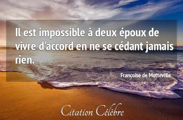 Il est impossible à deux époux de vivre d'accord en ne se cédant jamais rien.