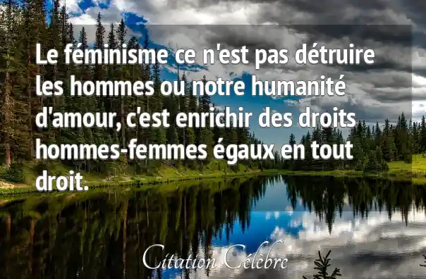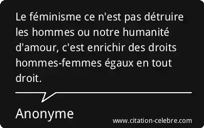 Le féminisme ce n'est pas détruire les hommes ou notre humanité d'amour, c'est enrichir des droits hommes-femmes égaux en tout droit.