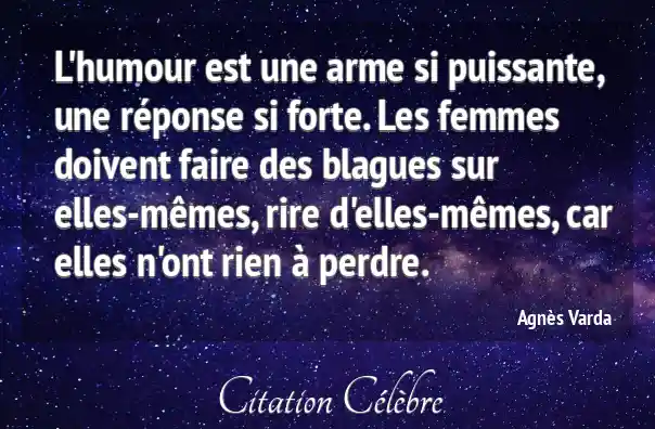 L'humour est une arme si puissante, une réponse si forte. Les femmes doivent faire des blagues sur elles-mêmes, rire d'elles-mêmes, car elles n'ont rien à perdre.