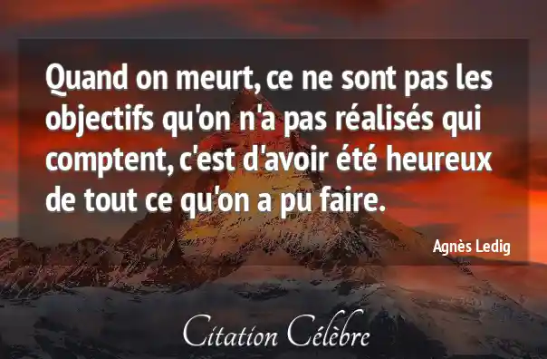 Quand on meurt, ce ne sont pas les objectifs qu'on n'a pas réalisés qui comptent, c'est d'avoir été heureux de tout ce qu'on a pu faire.