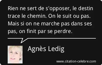 Rien ne sert de s'opposer, le destin trace le chemin. On le suit ou pas. Mais si on ne marche pas dans ses pas, on finit par se perdre.