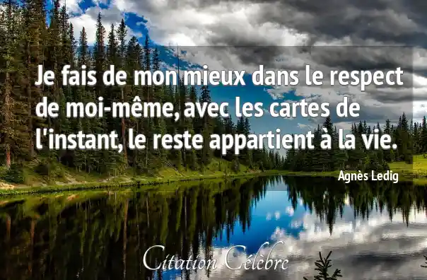 Je fais de mon mieux dans le respect de moi-même, avec les cartes de l'instant, le reste appartient à la vie.