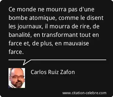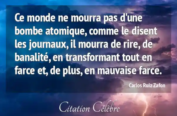 Ce monde ne mourra pas d'une bombe atomique, comme le disent les journaux, il mourra de rire, de banalité, en transformant tout en farce et, de plus, en mauvaise farce.