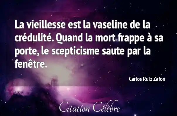 La vieillesse est la vaseline de la crédulité. Quand la mort frappe à sa porte, le scepticisme saute par la fenêtre.