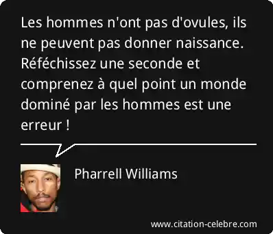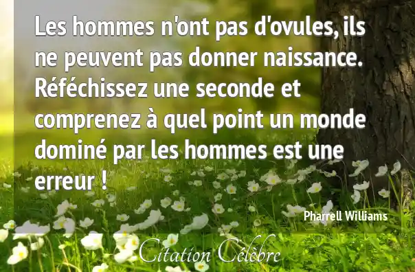 Les hommes n'ont pas d'ovules, ils ne peuvent pas donner naissance. Réféchissez une seconde et comprenez à quel point un monde dominé par les hommes est une erreur !