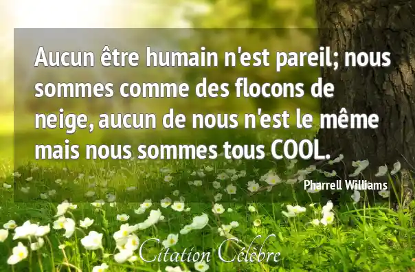 Aucun être humain n'est pareil; nous sommes comme des flocons de neige, aucun de nous n'est le même mais nous sommes tous COOL.