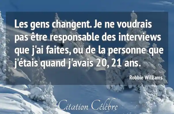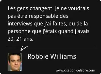 Les gens changent. Je ne voudrais pas être responsable des interviews que j'ai faites, ou de la personne que j'étais quand j'avais 20, 21 ans.