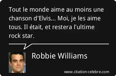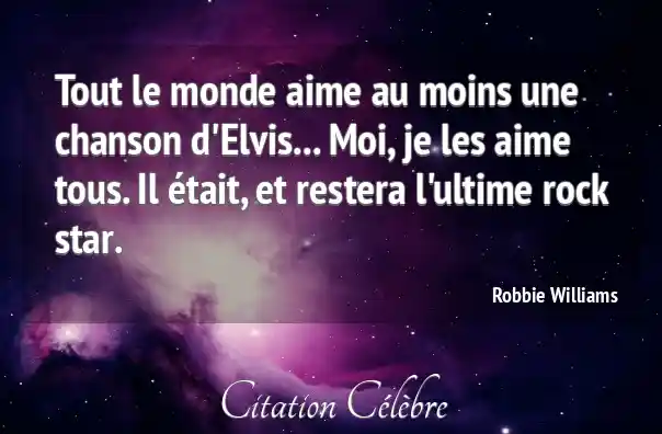 Tout le monde aime au moins une chanson d'Elvis... Moi, je les aime tous. Il était, et restera l'ultime rock star.