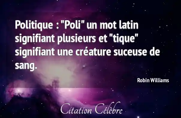 Politique : "Poli" un mot latin signifiant plusieurs et "tique" signifiant une créature suceuse de sang.