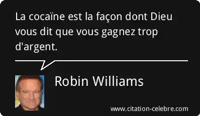 Citation Robin Williams dieu : La cocaïne est la façon dont Dieu vous dit que...