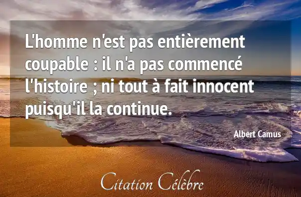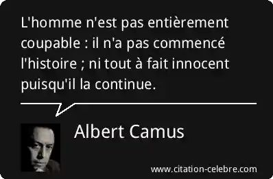 L'homme n'est pas entièrement coupable : il n'a pas commencé l'histoire ; ni tout à fait innocent puisqu'il la continue.