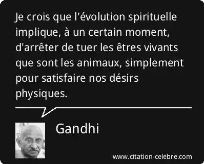 Je crois que l'évolution spirituelle implique, à un certain moment, d'arrêter de tuer les êtres vivants que sont les animaux, simplement pour satisfaire nos désirs physiques.