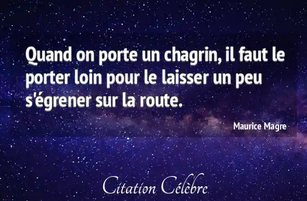 Quand on porte un chagrin, il faut le porter loin pour le laisser un peu s'égrener sur la route.