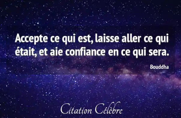 Accepte ce qui est, laisse aller ce qui était, et aie confiance en ce qui sera.