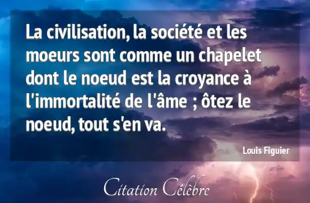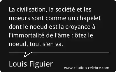 La civilisation, la société et les moeurs sont comme un chapelet dont le noeud est la croyance à l'immortalité de l'âme ; ôtez le noeud, tout s'en va.