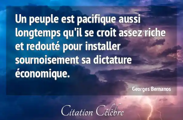 Un peuple est pacifique aussi longtemps qu'il se croit assez riche et redouté pour installer sournoisement sa dictature économique.