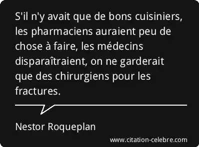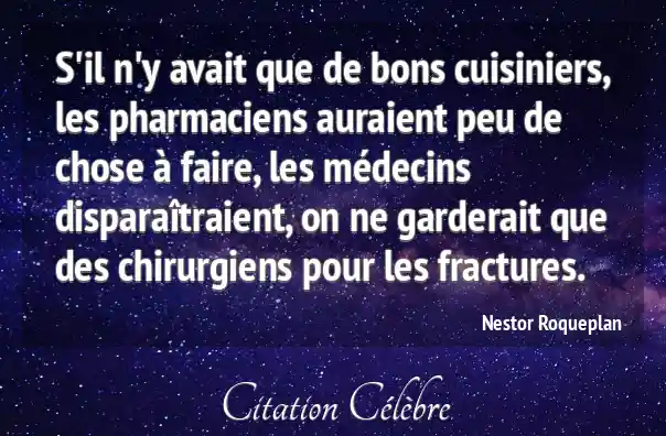 S'il n'y avait que de bons cuisiniers, les pharmaciens auraient peu de chose à faire, les médecins disparaîtraient, on ne garderait que des chirurgiens pour les fractures.