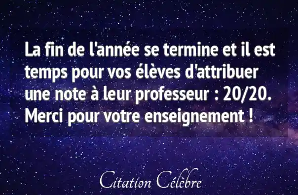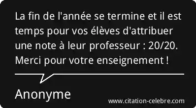 La fin de l'année se termine et il est temps pour vos élèves d'attribuer une note à leur professeur : 20/20. Merci pour votre enseignement !