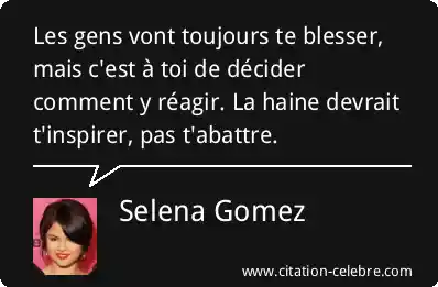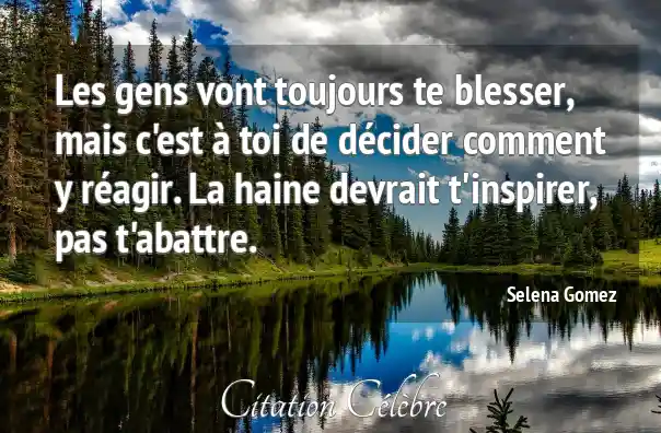 Les gens vont toujours te blesser, mais c'est à toi de décider comment y réagir. La haine devrait t'inspirer, pas t'abattre.