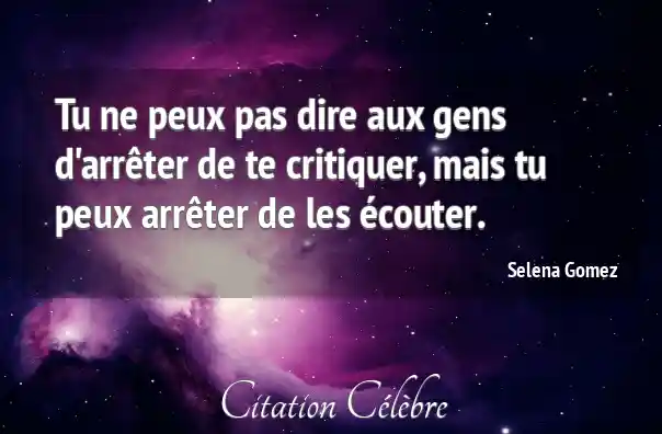 Tu ne peux pas dire aux gens d'arrêter de te critiquer, mais tu peux arrêter de les écouter.
