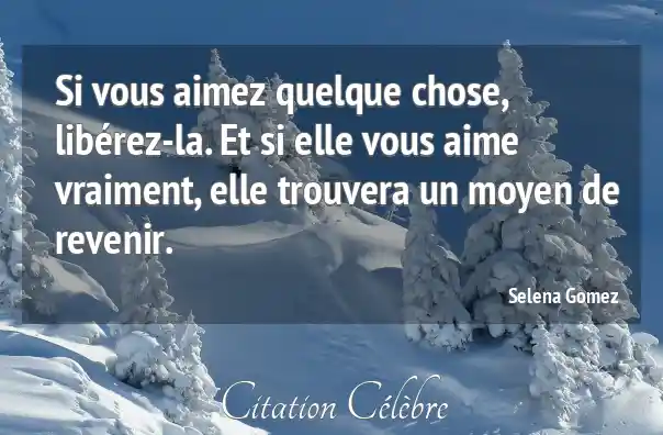 Si vous aimez quelque chose, libérez-la. Et si elle vous aime vraiment, elle trouvera un moyen de revenir.