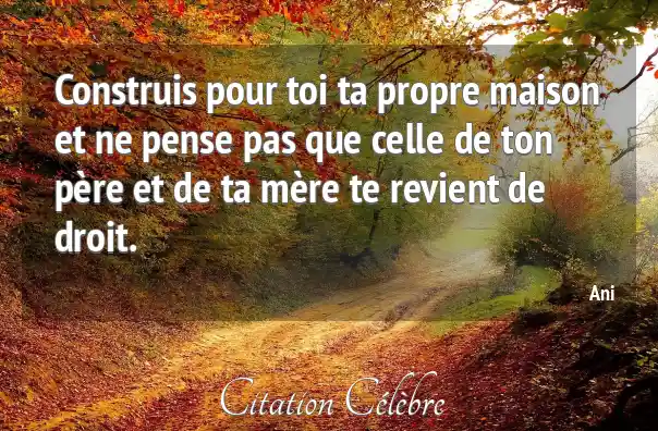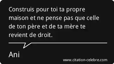 Construis pour toi ta propre maison et ne pense pas que celle de ton père et de ta mère te revient de droit.