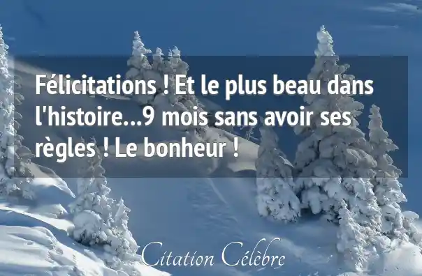 Félicitations ! Et le plus beau dans l'histoire...9 mois sans avoir ses règles ! Le bonheur !
