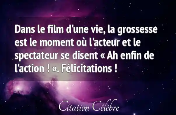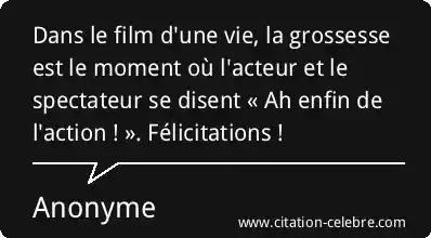 Dans le film d'une vie, la grossesse est le moment où l'acteur et le spectateur se disent « Ah enfin de l'action ! ». Félicitations !