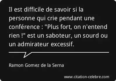 Il est difficile de savoir si la personne qui crie pendant une conférence : "Plus fort, on n'entend rien !" est un saboteur, un sourd ou un admirateur excessif.
