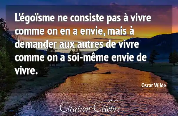 L'égoïsme ne consiste pas à vivre comme on en a envie, mais à demander aux autres de vivre comme on a soi-même envie de vivre.