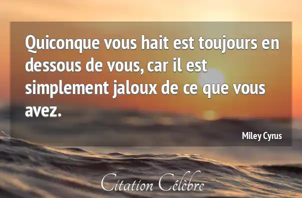 Quiconque vous hait est toujours en dessous de vous, car il est simplement jaloux de ce que vous avez.