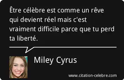 Citation Miley Cyrus liberte : Être célèbre est comme un rêve qui devient réel mais...