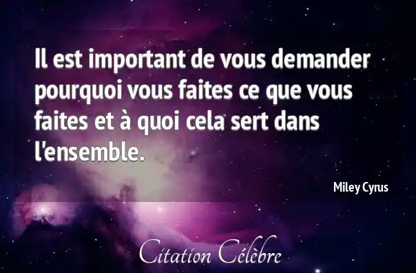 Il est important de vous demander pourquoi vous faites ce que vous faites et à quoi cela sert dans l'ensemble.