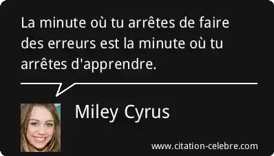 La minute où tu arrêtes de faire des erreurs est la minute où tu arrêtes d'apprendre.