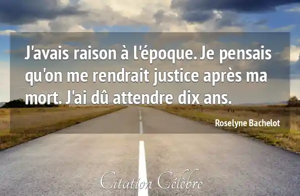 J'avais raison à l'époque. Je pensais qu'on me rendrait justice après ma mort. J'ai dû attendre dix ans.