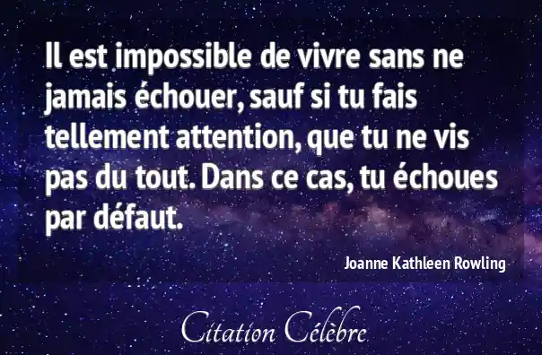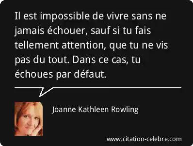 Il est impossible de vivre sans ne jamais échouer, sauf si tu fais tellement attention, que tu ne vis pas du tout. Dans ce cas, tu échoues par défaut.