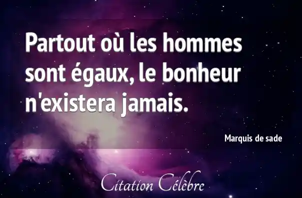 Partout où les hommes sont égaux, le bonheur n'existera jamais.
