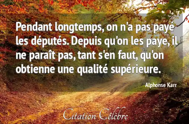 Pendant longtemps, on n'a pas payé les députés. Depuis qu'on les paye, il ne paraît pas, tant s'en faut, qu'on obtienne une qualité supérieure.
