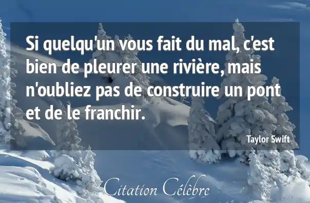 Si quelqu'un vous fait du mal, c'est bien de pleurer une rivière, mais n'oubliez pas de construire un pont et de le franchir.