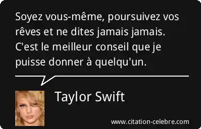 Soyez vous-même, poursuivez vos rêves et ne dites jamais jamais. C'est le meilleur conseil que je puisse donner à quelqu'un.