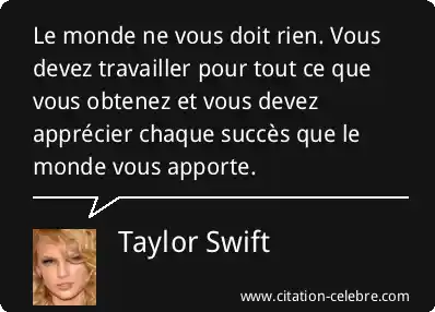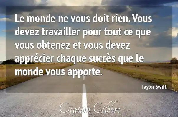 Le monde ne vous doit rien. Vous devez travailler pour tout ce que vous obtenez et vous devez apprécier chaque succès que le monde vous apporte.