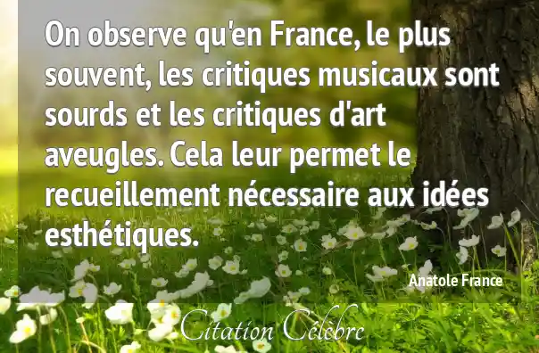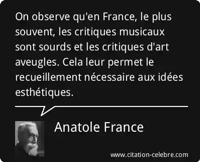 On observe qu'en France, le plus souvent, les critiques musicaux sont sourds et les critiques d'art aveugles. Cela leur permet le recueillement nécessaire aux idées esthétiques.