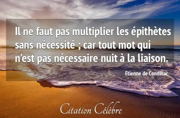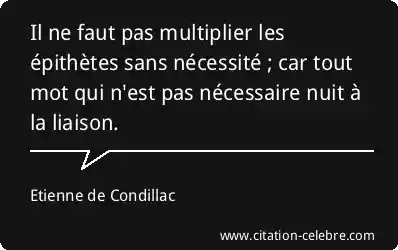 Il ne faut pas multiplier les épithètes sans nécessité ; car tout mot qui n'est pas nécessaire nuit à la liaison.