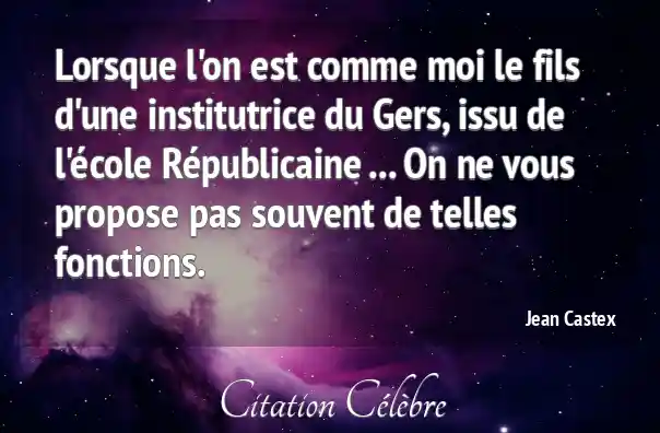 Lorsque l'on est comme moi le fils d'une institutrice du Gers, issu de l'école Républicaine ... On ne vous propose pas souvent de telles fonctions.