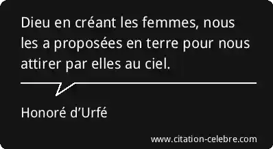 Dieu en créant les femmes, nous les a proposées en terre pour nous attirer par elles au ciel.