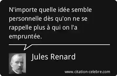 Citation Jules Renard idee : N'importe quelle idée semble personnelle dès qu'on ne se rappelle...