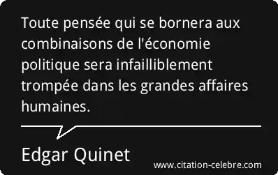Toute pensée qui se bornera aux combinaisons de l'économie politique sera infailliblement trompée dans les grandes affaires humaines.